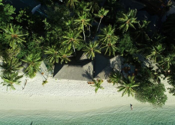 Spiaggia Thailandese immersa nella natura con barche tipiche del posto