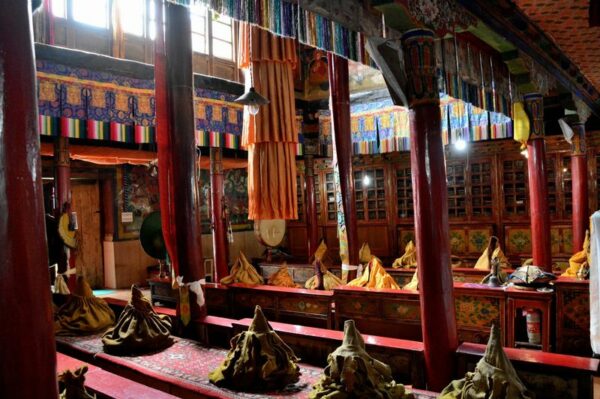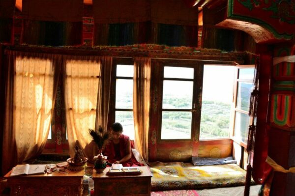 Il Monastero di Distik fu fondato nel 14° secolo da Changzem Tserab Zangpo, discepolo di Tsong Khapa, il fondatore dell’ordine Gelugpa (conosciuti come i “berretti gialli”). Oggi ospita centinaia di monaci che appartengono a questo ordine. All’interno del Gompa, la Gonghang (sala dei protettori) custodisce un’imponente immagine di Mahakala, una divinità terrifica e simbolo del potere. Troverete anche una biblioteca e una sala dedicata a Tara, la divinità femminile, dove sono presenti statue decorate con oro e pietre preziose. Tara, nata da una lacrima del Buddha della compassione, è rappresentata in due forme: Tara bianca, dispensatrice di vita, e Tara verde, madre di tutti i Buddha.
