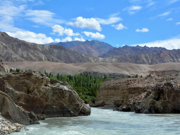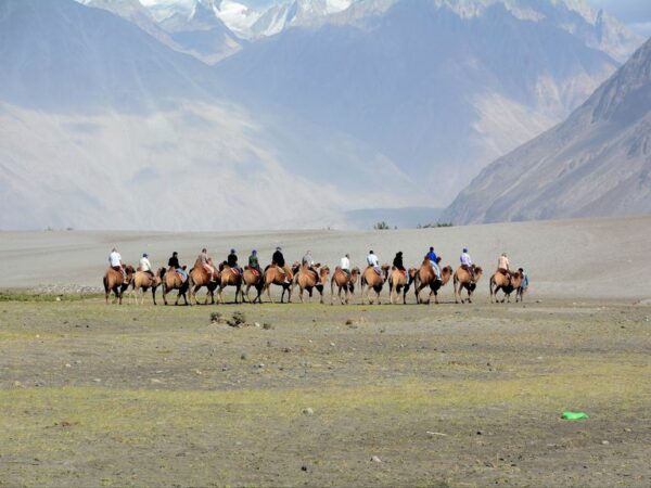 Superato uno sperone roccioso a forma di arco chiamato India Gate, arriverete a North Pullu, da dove la strada scende attraverso ampi tornanti nella Valle di Nubra, aperta al turismo solo dal 2010. State seguendo l’antica Via della Seta che collegava l’Asia Centrale con il Sud Asiatico. Lungo il percorso, incontrerete il fiume Shyok, che si perde tra mille rivoli tra le dune sabbiose che caratterizzano il suo letto. L’altro fiume della valle è il Nubra, che ha origine dal ghiacciaio Siache. I due fiumi si uniscono in un luogo chiamato Khalsar.