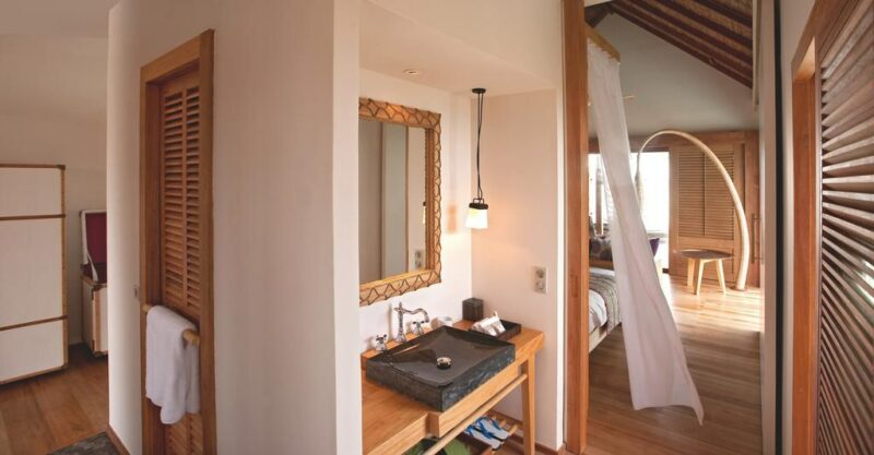 CAMERE: 110 Ville suddivise in 24 Beach Villa, 56 Water Villa e 30 Senior Water Villa. Tutte le ville sono finemente arredate con materiali naturali e tetti in paglia, dotate di aria condizionata, ventilatore a soffitto, bagno, doccia, asciugacapelli, angolo soggiorno, collegamento internet Wi-Fi, TV LCD, mac mini (connessione iPod, CD & DVD), telefono, mini-bar, cassetta di sicurezza, bollitore per tè, caffè e terrazza. Le Senior Water Villa dispongono inoltre di bagno con vasca da bagno esterna, doppio lavabo, piscina privata accesso diretto al mare.