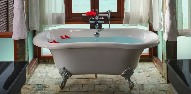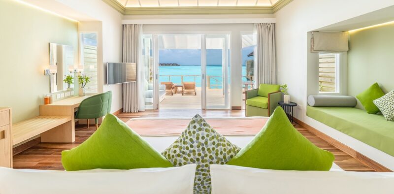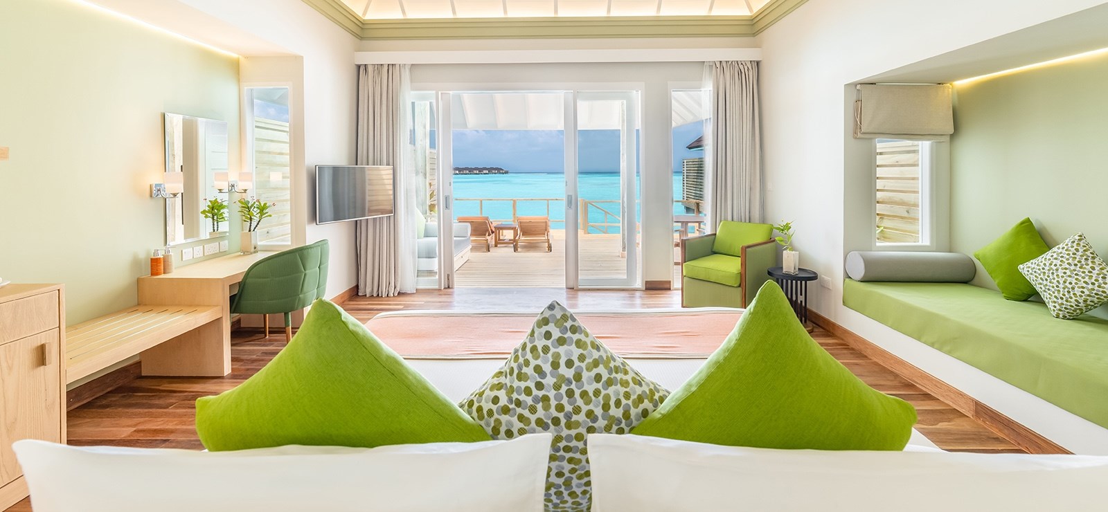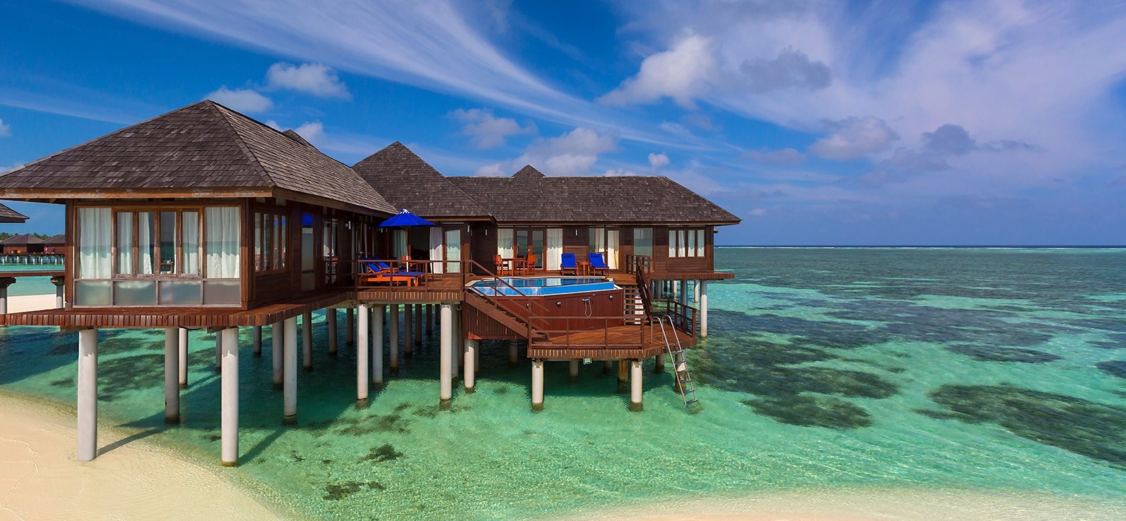 13 Jacuzzi Water Villas e 19 Sunset Jacuzzi Water Villas (82 mq) Situate su palafitte sulle acque turchesi della laguna, sono molto spaziose e caratterizzate da una vasca idromassaggio sulla terrazza-solarium. Il bagno è dotato di doppio lavabo, doccia a pioggia e vasca da bagno free standingcon vista sulla laguna. Godetevi la vista illimitata sul tramonto delle Maldive dalle 19 Sunset Jacuzzi Water Villas. Massima occupazione:3 adulti o 2 adulti e 1 bambino sopra i 7 anni.