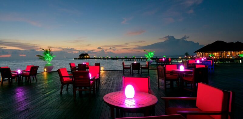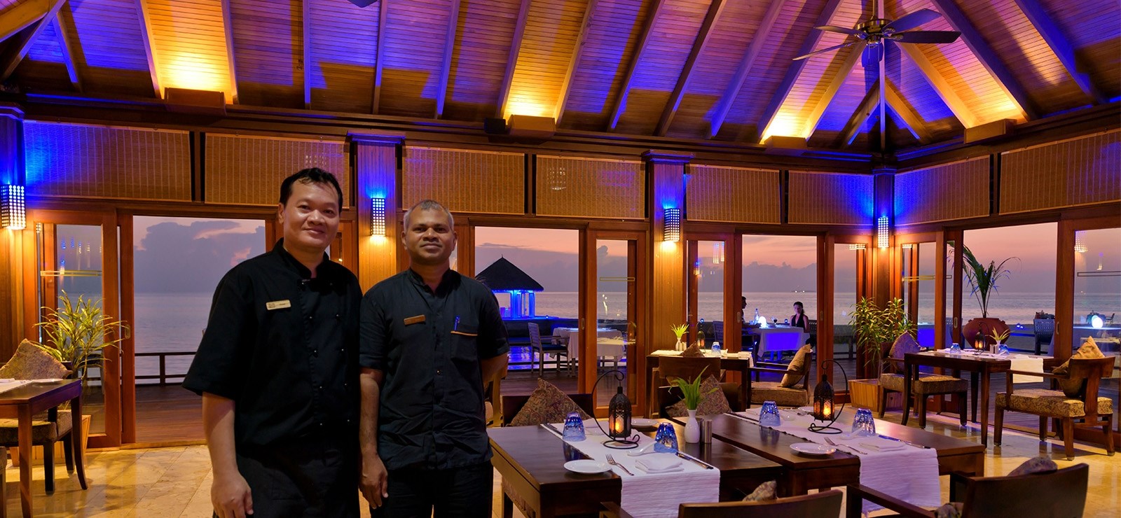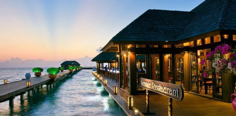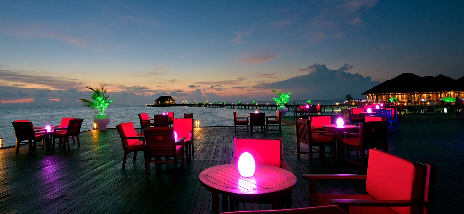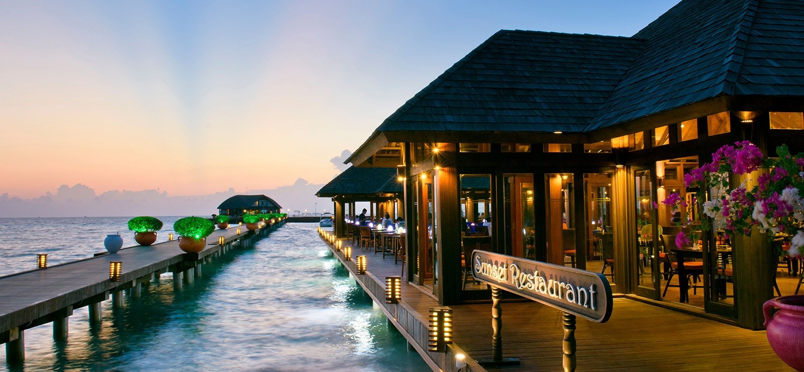 il SUNSET RESTAURANT Costruito interamente sull’acqua in un ambiente tranquillo ed informale. Serve piatti di cucina orientale, maldiviana ed internazionale. L’ ISLAND PIZZA & BAR è una Pizzeria in zona piscina con ampia scelta di pizze. Il DHONI BAR vicino alla piscina offre ottimi drink e cocktail. IL PLANCTON GRILL è un raffinato ristorante sul mare che offre piatti di cucina fusion ed orientale, aragoste, granchi e gamberi. Ci sono poi il DHONI ed il LAGOON BAR che offre ottimi cocktail e drink.
