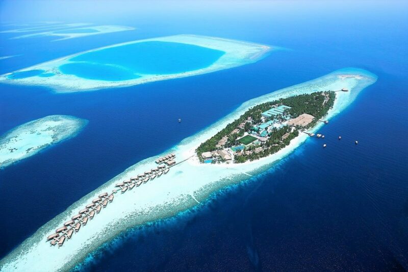 DOVE: Isola Vilamendhoo, nell’Atollo di Ari Sud, a 87 Km dall’aeroporto internazionale di Malè, trasferimento in idrovolante (25 minuti).