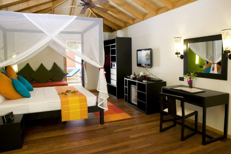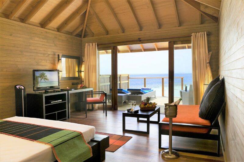 CAMERE: Le camere arredate in stile Maldiviane di Vilamendhoo sono dotate di tutti i confort per il tuo relax. Si suddividono in 23 Garden Room, 111 Beach Villas, 30 Jacuzzi Beach Villas e 30 Water Villas. Goditi i comfort di un letto king-size, aria condizionata, minibar ben fornito, bagno all’aperto con servizi moderni, TV via cavo, lettore DVD / CD e cassetta di sicurezza personale