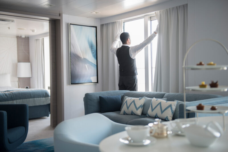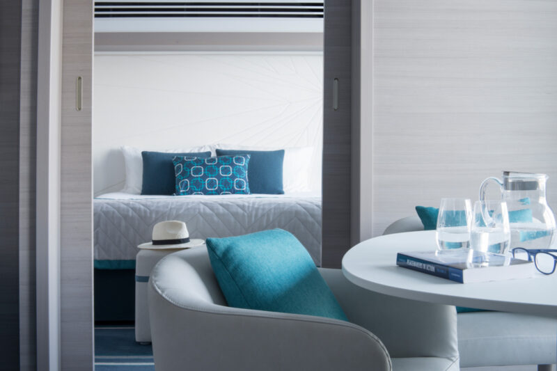 CABINE: Tutte le cabine sono dotata di Aria condizionata a controllo individuale, letto king size o letti gemelli, disponibili cabine comunicanti (bambini benvenuti), Minibar, TV satellitare a schermo piatto, Altoparlante Bluetooth Bose ™, Scrivania con cancelleria, Cassetta di sicurezza, Prodotti da bagno Hermès®, Toilette, accappatoi, asciugacapelli, Telefono con linea diretta, Servizio in camera 24 ore, Accesso Internet incluso Wifi