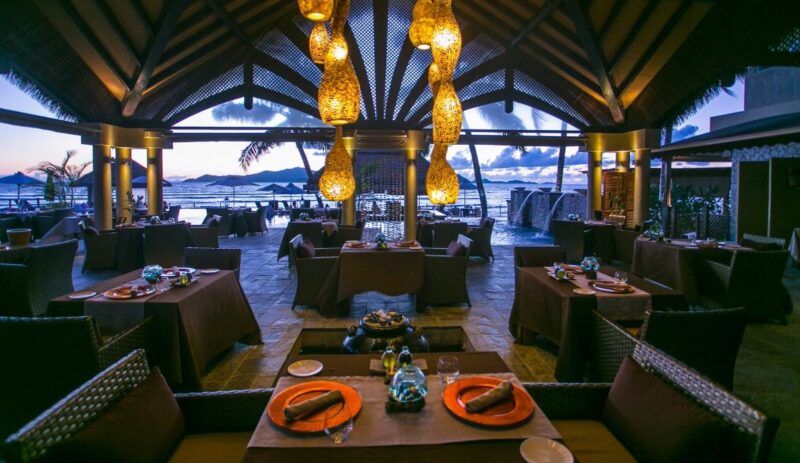 RISTORANTI E BAR: Un bellissimo nuovo padiglione, eccellenza del design, accoglie la ristorazione. Menù d’autore in stile Mediterraneo con accenti Creoli ed Asiatici vi delizieranno in una rilassante atmosfera, circondati dall’Oceano Indiano e dal tramonto tropicale. Una vasta gamma di drink e specialità fatte in casa possono anche essere servite direttamente in villa, per romantiche cene private.