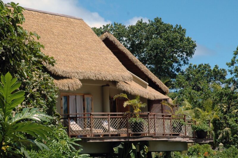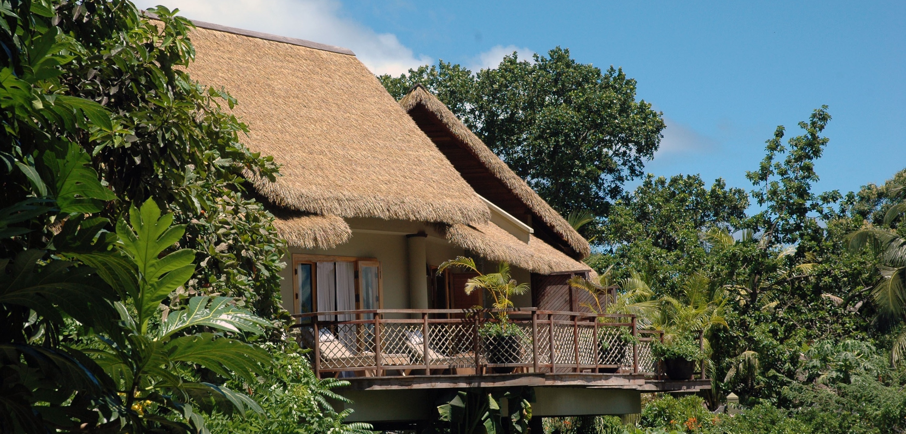 Il resort è unico nel suo genere: ville individuali su palafitte inerpicate sulla collina tra liane, jungla, massi granitici e panorami sempre diversi. L’architettura è una felice combinazione di stili, dall’Indonesia all’Africa, tesa a creare un atmosfera di magia. La struttura si suddivide in un corpo centrale dove si trova la reception ed il ristorante sul mare e le unità abitative arroccate sulla collina.