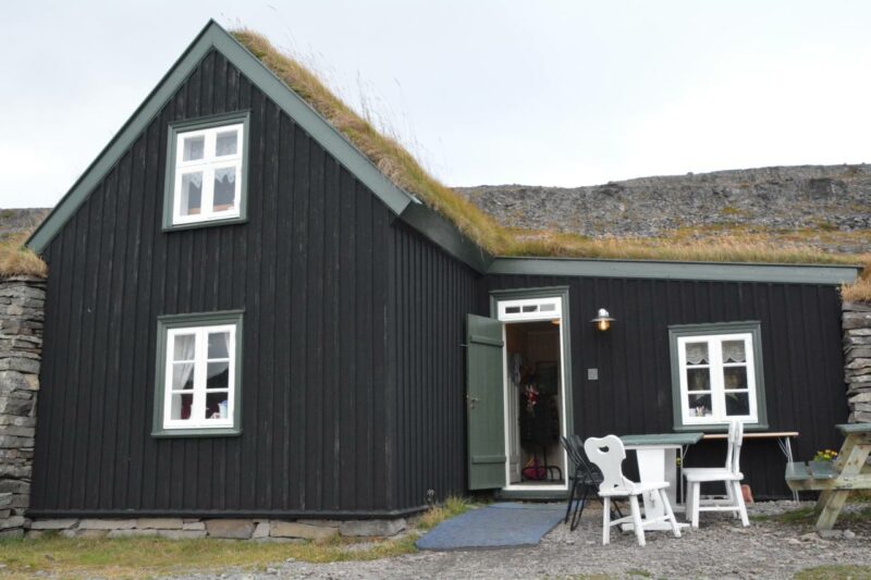 HOF. Nel villaggio si trova una chiesetta di legno con il tetto di torba che sembra uscita da un libro di fiabe, in una cornice di betulle e frassini, con fiori che crescono sul tetto ammantato d’erba.
